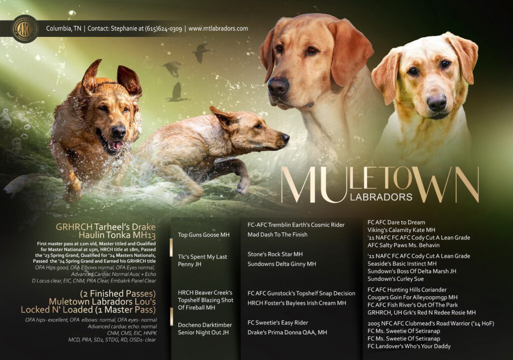 (2 Finished Passes) Muletown Labradors Lou’s Locked N’ Loaded (1 master Pass)